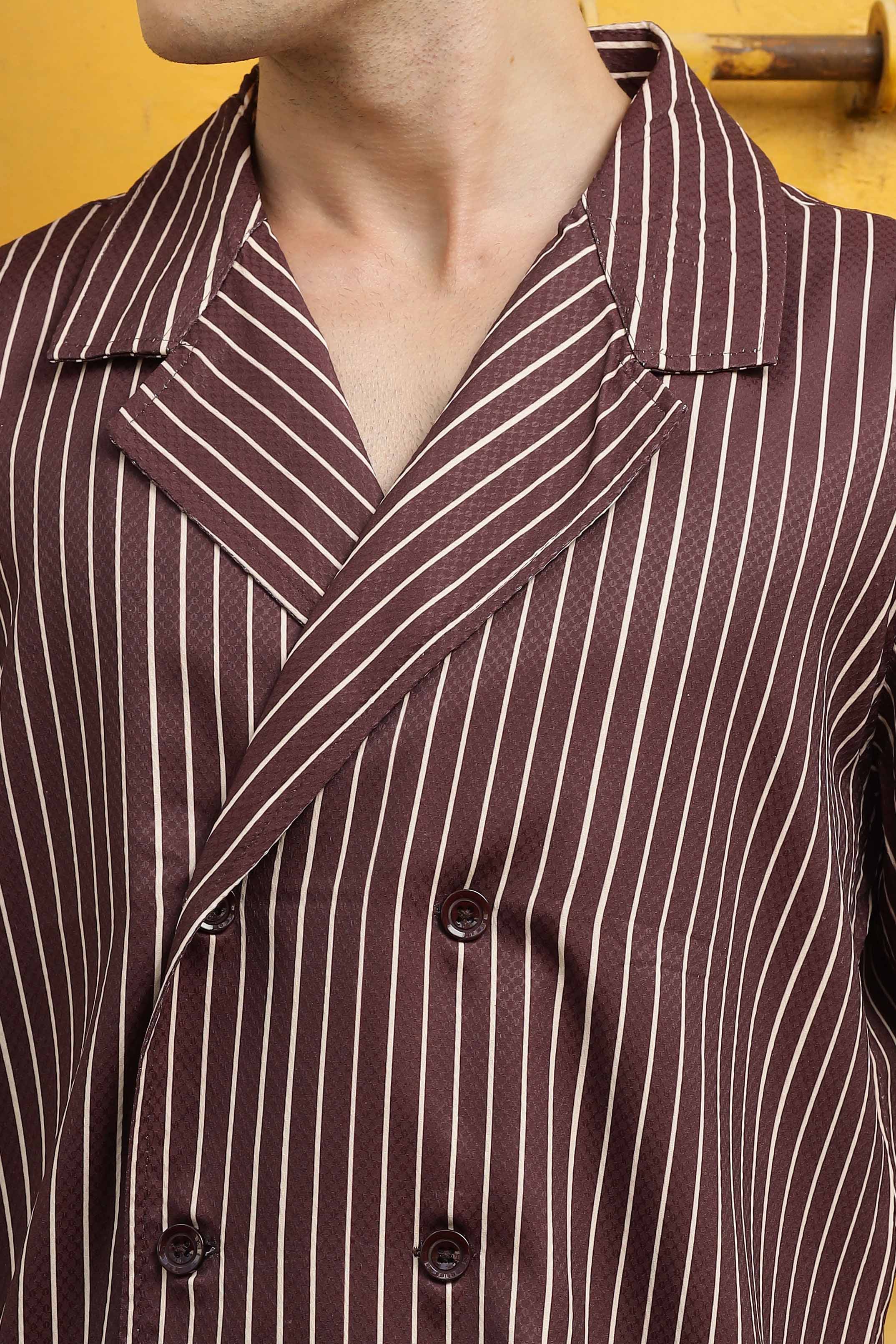 Brown Pinstripe Jacquard Textured Korean Streetwear Co-ord Set