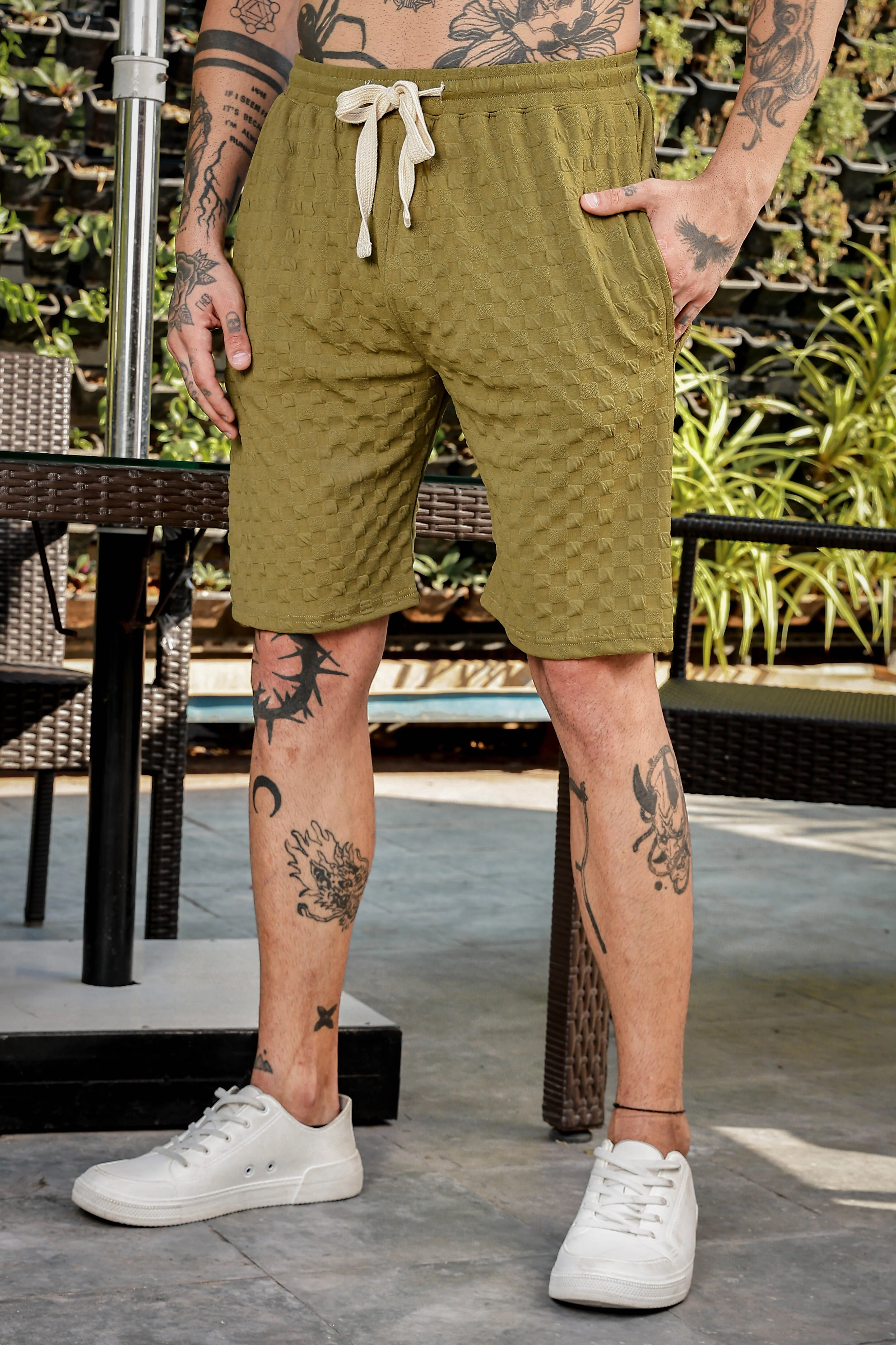 Unisex Olive Textured Oversized V-Neck Tee & Shorts Co-ord Set